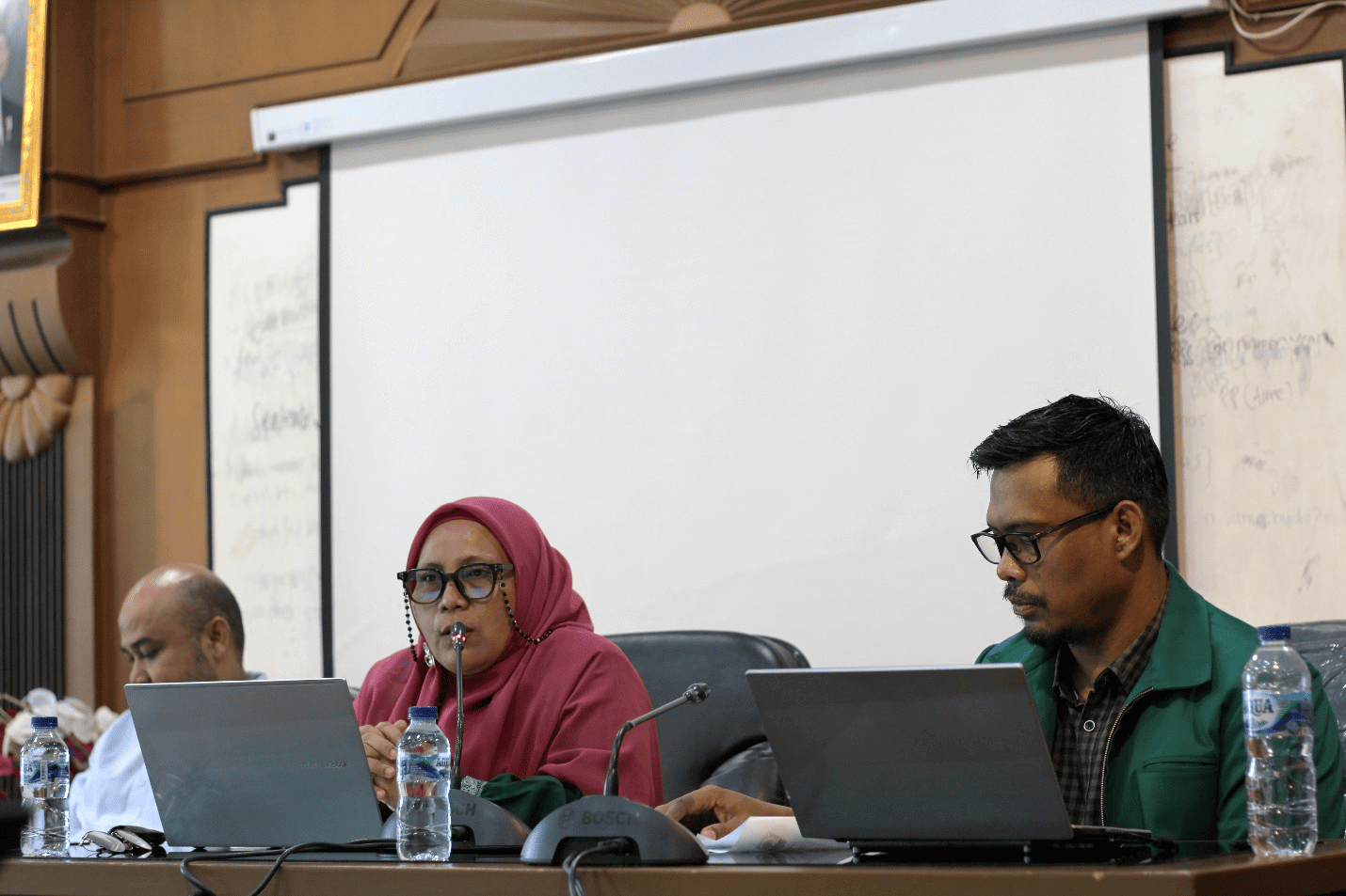 Gambar 1. Ketua Departemen Linguistik, Prof. Dr. Oktavianus, M.Hum. memandu kegiatan diskusi serta pemilihan Anggota Senat Pengganti Antarwaktu Departemen Linguistik FIB Unand